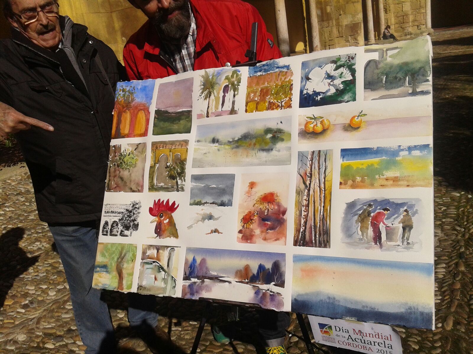 Ha sido un día genial para todos los amantes de la acuarela el que hemos pasado hoy en el Patio de los naranjos. Hemos coincidido unas 30 personas pintando tanto de la Agrupación de Acuarelistas de Andalucía así como de la escuela de arte Antonio Povedano y de la asociación Pepe Espaliú. Numerosas personas han venido a vernos y a los que se les ha regalado un marcapaginas que previamente habíamos pintado. A parte de pintar de todo lo que teníamos alrededor, hemos hecho entre todos un expomural donde hemos dividido el papel y cada uno ha aportado un poco de él. La verdad es que ha sido algo original y todo el mundo ha estado muy contento con participar.